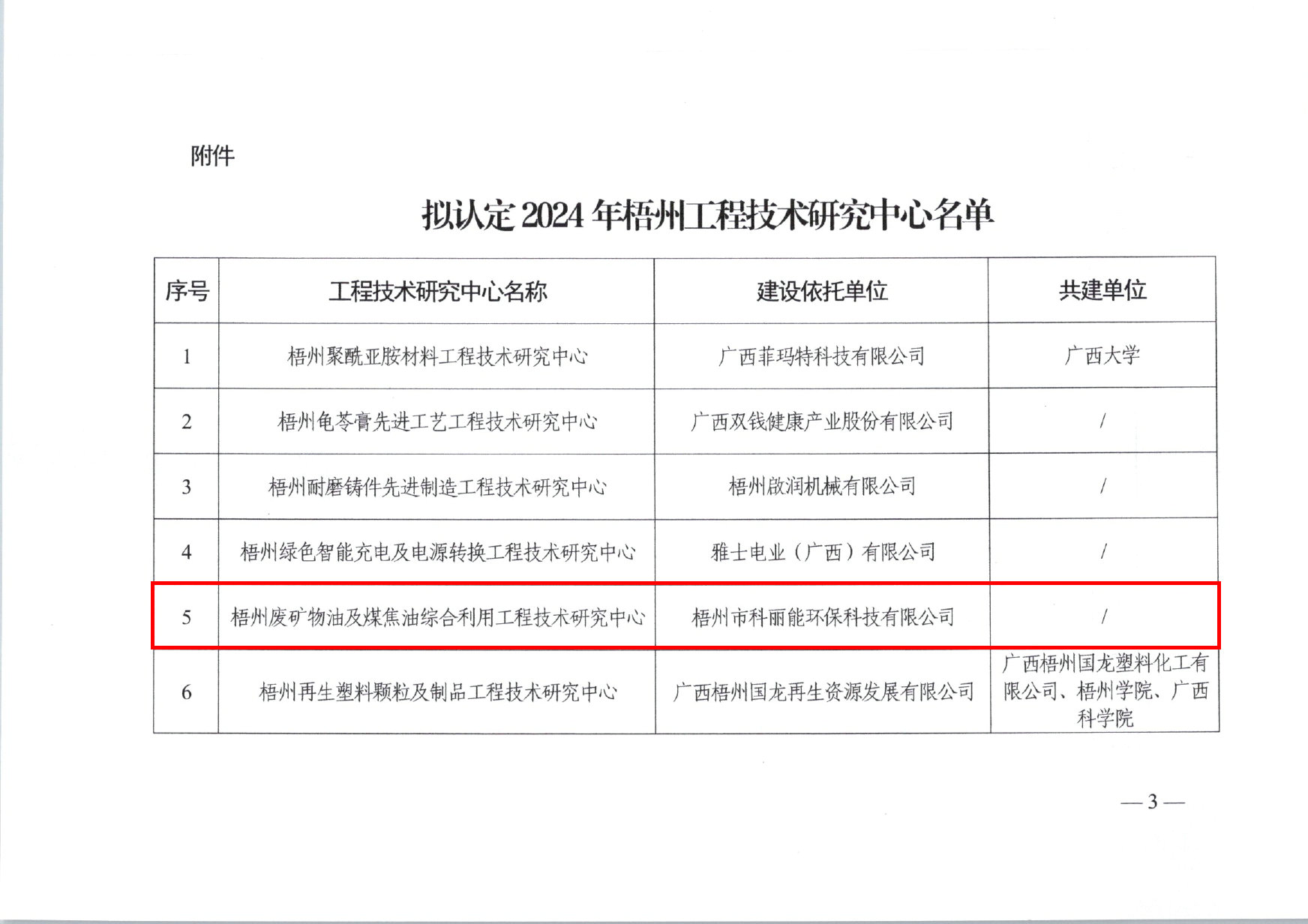 近日,梧州市科麗能環(huán)?萍加邢薰驹诩夹g(shù)創(chuàng)新與研發(fā)領(lǐng)域取得了重大突破,榮獲“梧州廢礦物油及煤焦油綜合利用工程技術(shù)研究中心”認(rèn)定,這一殊榮不僅是對我司在廢礦物油及煤焦油綜合利用領(lǐng)域持續(xù)努力的認(rèn)可,更是對我司技術(shù)實力和創(chuàng)新能力的肯定。